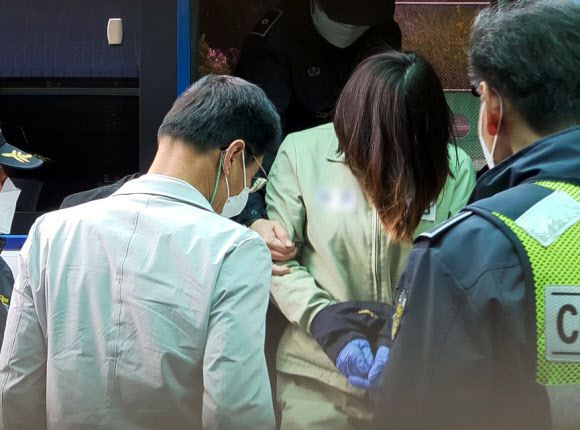 대구지방법원 김천지원에서 ’구미 3세 여아 사망 사건’과 관련해 숨진 여아의 친모가 아닌 언니로 드러난 김모씨의 첫 재판이 열린 지난 9일, 김씨가 법정으로 향하고 있다. 연합뉴스 |