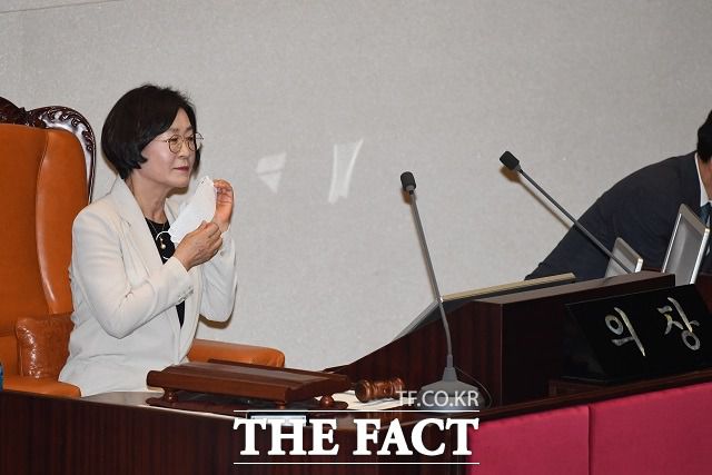 김상희 국회부의장이 19일 국회 본회의장에서 열린 대정부질문 과정에서 야당 의원들을 비꼬는 듯한 발언으로 논란의 중심에 섰다. /배정한 기자 |