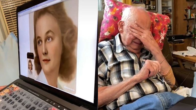 라슨 씨는 얼굴 사진을 움직이는 영상으로 만들어주는 AI 애플리케이션을 이용해 할머니의 젊은 시절 모습을 컴퓨터 화면 위로 되살려냈습니다. 약 80년 전 자신이 첫눈에 반했던 아내의 모습이 눈앞에 나타나자, 제이크 씨는 믿을 수 없다는 표정으로 "세상에, 정말 내 아내잖아. 내 아내가 살아 있어"라고 소리쳤습니다.