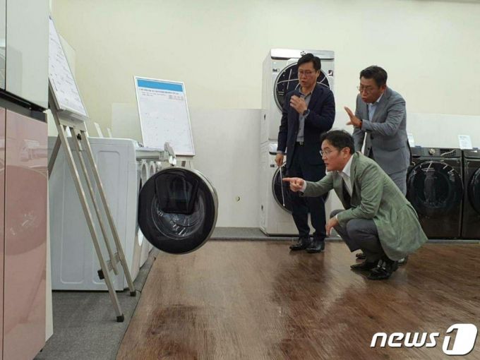 이재용 삼성전자 부회장이 지난해 6월23일 삼성전자 생활가전 사업의 차세대 제품 개발, 온라인 사업 강화 및 중장기 전략 등을 점검하기 위해 경기도 수원에 위치한 생활가전사업부를 찾아 둘러보고 있다. /사진제공=삼성전자 |