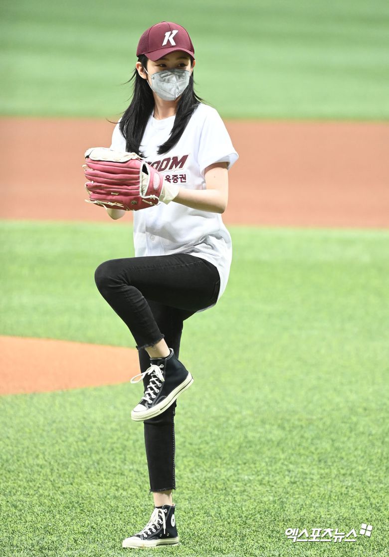[엑스포츠뉴스 고척, 김한준 기자] 25일 오후 서울 구로구 고척스카이돔에서 열린 '2021 신한은행 SOL KBO리그' SSG 랜더스와 키움 히어로즈의 경기, 경기 전 모델 박지현이 시구에 임하고 있다. kowel@xportsnews.com이 기사의 카테고리는 언론사의 분류를 따릅니다.0공유하기