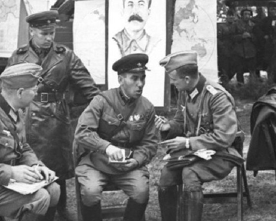 폴란드를 분할 점령한 후 환담 중인 독일과 소련의 장교. 불과 2년 후 이들은 사상 최대의 전쟁을 벌이는 사이가 되었다. [wikipedia.org] |