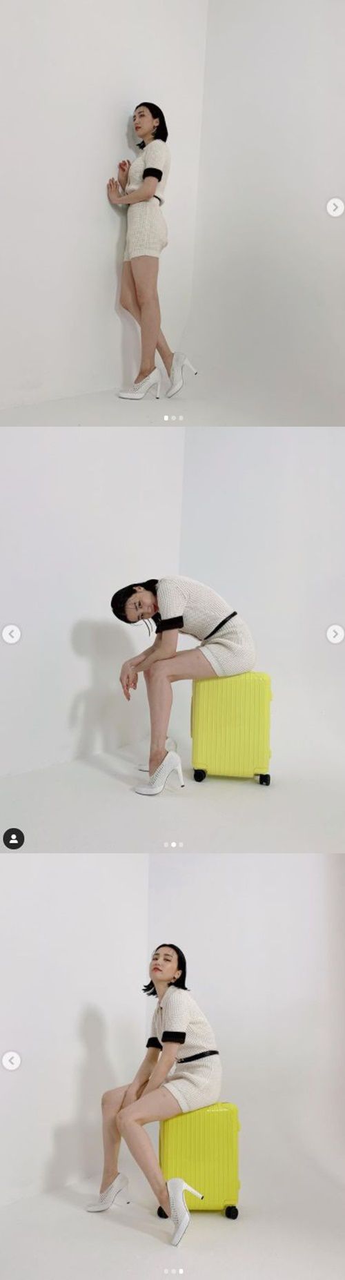 사진 속에는 스튜디오에서 긴 다리를 자랑하는 그의 모습이 담겨 있다.