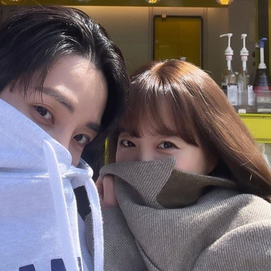이수혁은 드라마 촬영장에 마련된 커피차 앞에서 얼굴을 맞대고 다정하게 포즈를 취하고 있는 모습. 특히 옷으로 얼굴의 반을 가리며 연인같은 분위기를 자아내는 두 사람이 시선을 끈다.