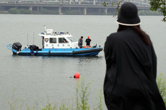 한밤중 서울 반포한강공원에서 잠들었다가 실종된 대학생 손정민 씨가 실종 엿새째인 30일 오후 서울 반포한강공원 인근에서 숨진채 발견됐다. 사진은 이날 반포한강에서 수중수색작업중인 경찰. 뉴스1