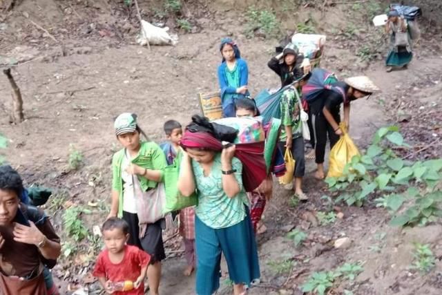 지난달 30일 미얀마 쿠데타군의 공습을 피해 태국으로 피신하는 카렌 주민들의 모습. 미얀마나우 캡처