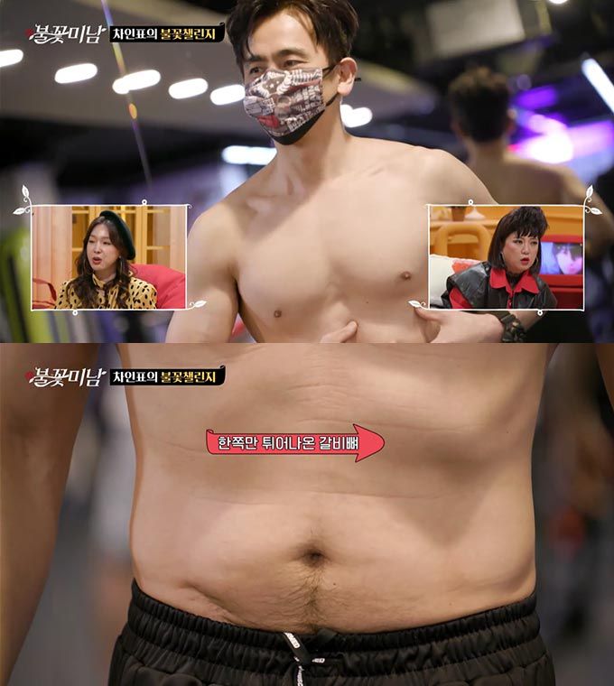 이를 위해 다시 헬스장을 찾은 차인표는 웃통을 벗고 트레이너와 몸 상태를 체크했다. 한쪽만 튀어나온 갈비뼈와 어깨가 눈길을 끌었다.