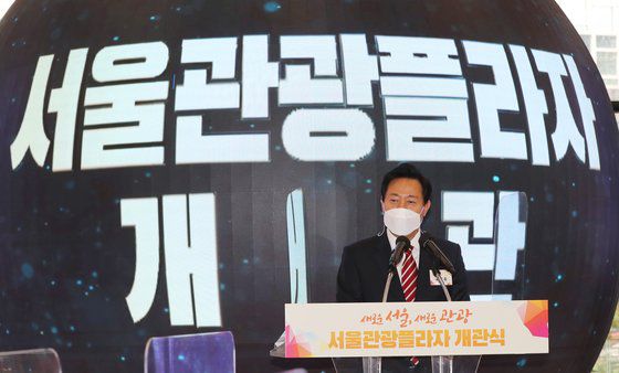 서울관광플라자 개관식이 지난달 29일 오전 서울 종로구 삼일빌딩에서 열렸다. 이날 오세훈 서울시장이 개관식에 참석해 축사를 하고 있다. 김경록 기자 |