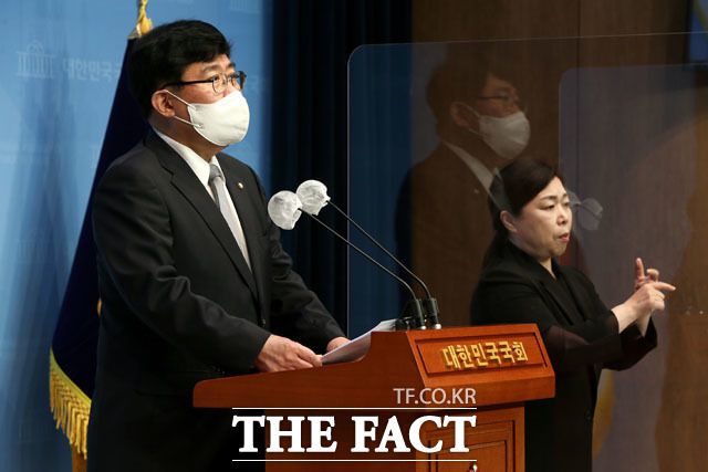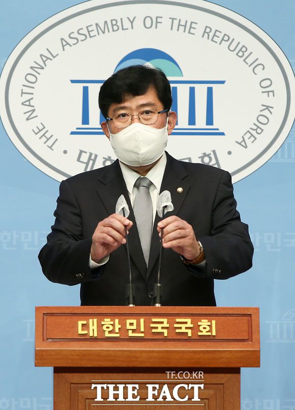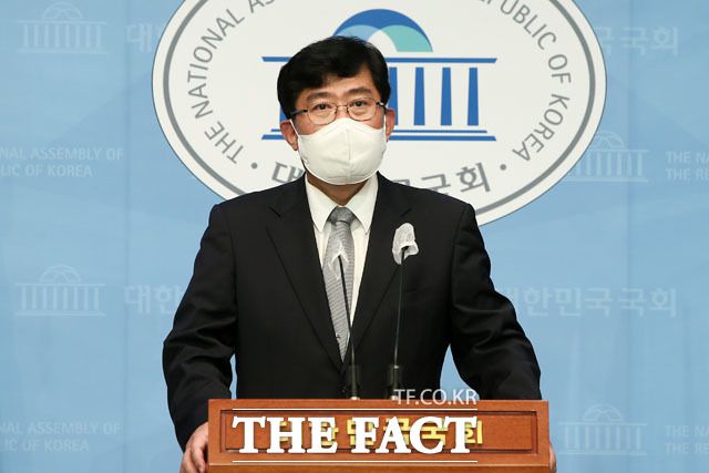 [더팩트ㅣ국회=남윤호 기자] 윤창현 국민의힘 의원이 7일 오후 서울 여의도 국회 소통관에서 가상화폐거래소의 위험성이 높아짐에 따른 ‘코인런’ 현상에 대해 정부의 긴급대책을 촉구하는 기자회견을 하고 있다.