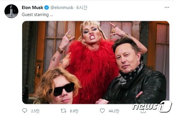 (서울=뉴스1) 박형기 기자 = 일론 머스크 테슬라 최고경영자(CEO)가 8일(현지시간) 미국 NBC방송의 간판 코미디쇼 '새터데이 나이트 라이브'(SNL)에 진행자로 출연했다.