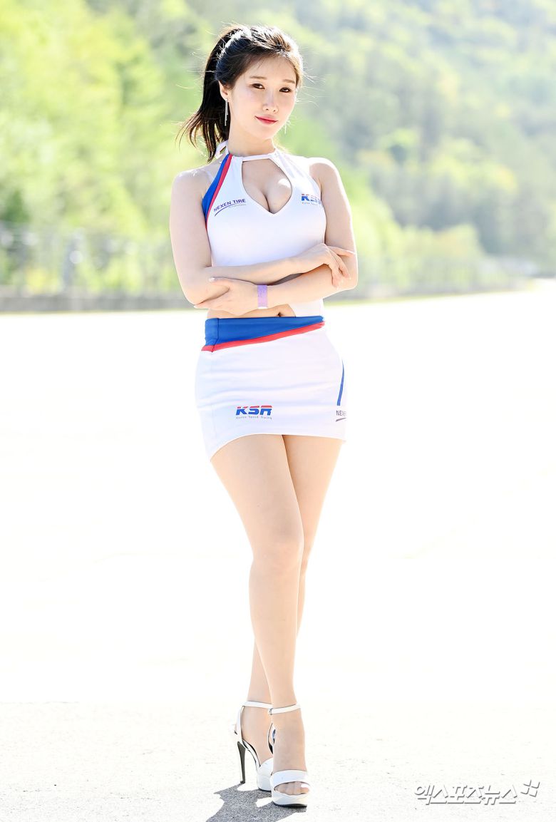 [엑스포츠뉴스 태백, 김한준 기자] 9일 강원도 태백스피드레이싱에서 열린 '2021 넥센스피드레이싱 & 태백 모터스포츠 페스티벌' 개막전 경기, 코리아스피드레이싱(KSR) 본부모델 주현하가 포즈를 취하고 있다.