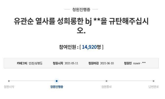 "유관순 열사 성희롱한 BJ, 규탄해주십시요" 靑 청원도