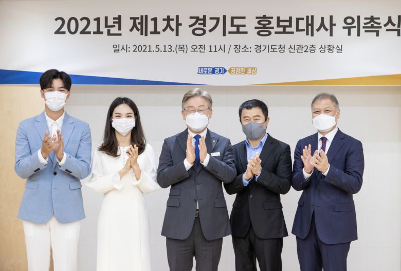 이재명 경기도지사는 13일 경기도청에서 이들을 경기도 홍보대사로 위촉했다. 활동기간은 2년이다.