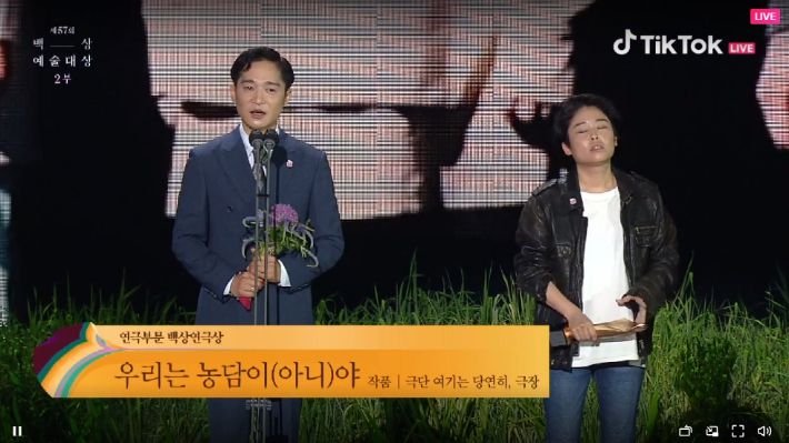 '우리는 농담이 (아니)야'가 13일 일산 킨텍스에서 열린 제57회 백상예술대상(이하 백상예술대상) 연극부문 '백상연극상'을 수상했다.