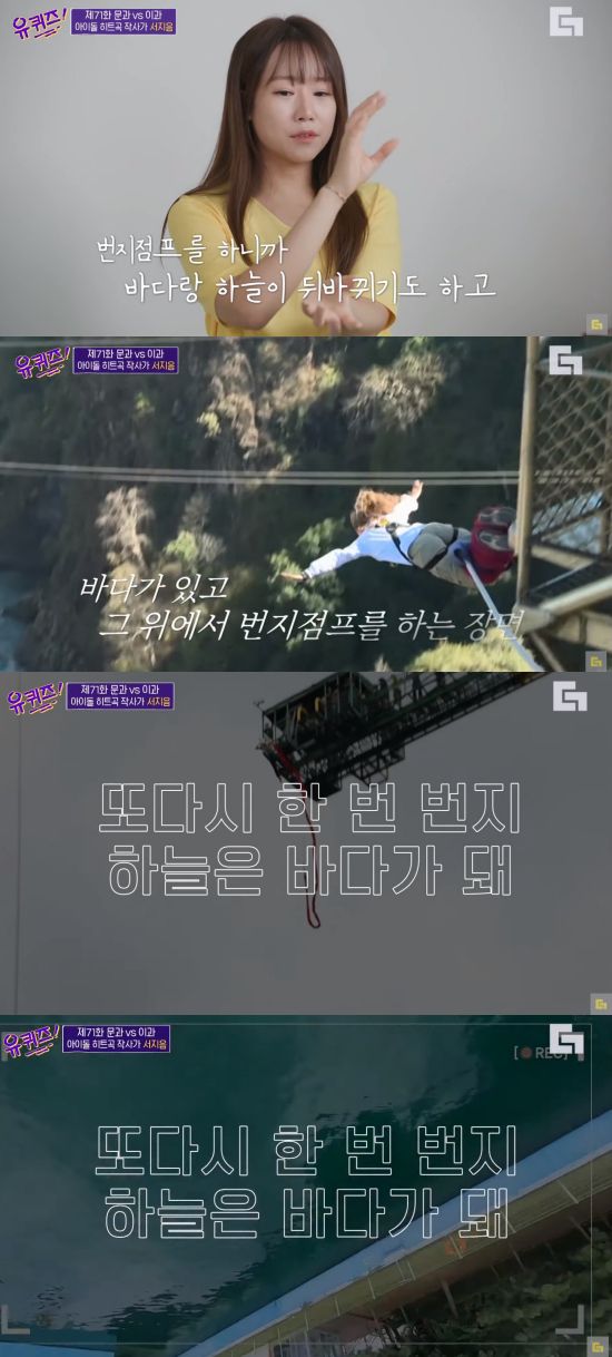 서정아 작사가도 “tvN ‘유퀴즈 온 더 블록’ 방송 보고 오마이걸 ‘번지’ 가사의 의도를 알았다”라며 같은 업계인, 심지어 친자매라고 해도 작품의 본 의도를 다 아는 게 아니라는 사실을 알려줬다.
