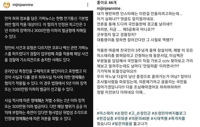 그러면서 "지금 제 5공화국 아니죠??…우리 어느날 다 같이 남산 중정(중앙정보부, 현 국가정보원)으로 끌려가는 거 아님? 잡아다 조사할 사람들 따로 있는데, 의문 제기하고 글 올리는 국민들 잡아가겠답니다!!!"고 덧붙였다.