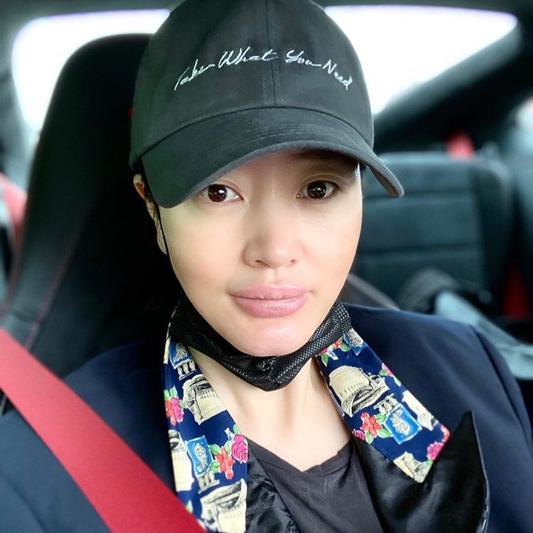 공개된 사진에는 차 안에서 마스크를 턱에 걸친 채 촬영한 김혜수 '셀카'가 담겼고, 도톰한 입술이 눈길을 끈다.
