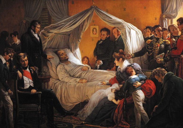 “후퇴하는 자는…”나폴레옹의 마지막 순간 - 1821년 5월, 40여일을 앓던 나폴레옹이 유배지인 남대서양 세인트헬레나섬에서 죽었을 때, 주변에 있던 사람들이 들은 마지막 말은“후퇴하는 자는…”“군의 선두에서…”같은 불명확한 구절들뿐이었다. 사후 그는 자유주의적 인물이자 프랑스 혁명 정신의 계승자로 묘사되고‘뻥튀기’무용담이 더해지며 낭만주의 문예 사조를 타고 극적인 영웅으로 기억됐다. 실제로는 그의 유해는 죽은 지 20년 가까이 지나서야 모국 프랑스로 송환됐고, 지금 파리 앵발리드에 있는 거대한 붉은 석관이 만들어진 것은 사후 40년 넘게 지난 뒤였다. 나폴레옹 시대에 활동했던 독일 태생의 프랑스 낭만주의 화가·석판화가 샤를 드 스튜벤 남작의 그림‘나폴레옹의 죽음’. /위키피디아 |