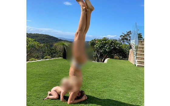 그 중 논란이 된 건 잔디밭에서 속옷하의만 입고 물구나무 서 자신의 10개월 아이에게 모유를 수유하는 사진이었다. 상의는 완전히 탈의한 상태로, 아이가 기어와 브라이트의 모유를 먹고 있는 모습이다.