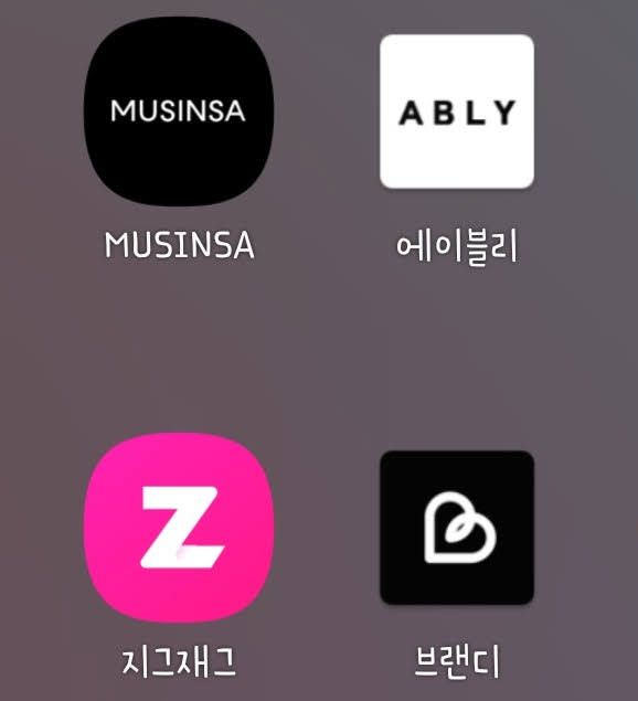 패션 플랫폼 무신사, 에이블리, 지그재그, 브랜디 앱(애플리케이션) 캡쳐