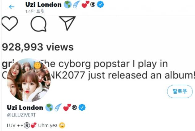 앞서 릴 우지 버트는 2015년부터 꾸준히 자신이 여자친구의 팬임을 드러내왔다. 그는 여자친구의 트위터 계정을 팔로잉하는 것은 물론 과거 진행한 인스타그램 라이브를 통해 “너희가 여자친구가 누구인지 몰라도 상관 없다. 실존하는 사람이 아니라 생각해도 신경 안 쓴다. 여자친구, 케이팝”이라고 말하며 애정을 표현한 바 있다.
