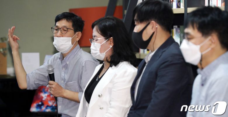 2020년 9월 25일 서울 강남구 최인아책방에서 열린 '한번도 경험해보지 못한 나라(조국흑서) 저자 간담회'에 모인 조국흑서 집필자들. 왼쪽부터 진중권 전 동양대 교수, 권경애 법무법인 해미르 변호사, 서민 단국대 의대 교수, 김경율 회계사(전 참여연대 집행위원장). '© News1
