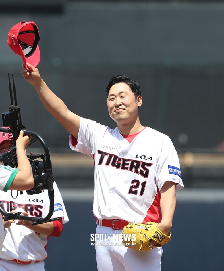 [스포티비뉴스=광주, 곽혜미 기자] 2021 신한은행 SOL KBO리그 KIA 타이거즈와 KT 위즈의 경기가 30일 오후 광주 KIA챔피언스필드에서 열렸다. 은퇴식을 하는 윤석민이 팬들을 향해 인사를 하고 있다. 스포티비뉴스=광주, 곽혜미 기자<저작권자 ⓒ SPOTV NEWS 무단전재 및 재배포 금지>이 기사의 카테고리는 언론사의 분류를 따릅니다.0공유하기