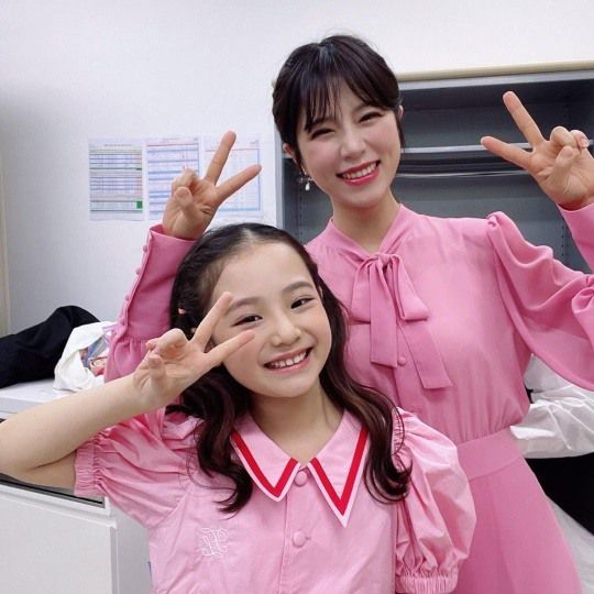 공개된 사진 속에는 양지은과 임서원이 핑크색 원피스를 입은 채 대기실에서 나란히 카메라를 향해 브이를 날리고 있다.