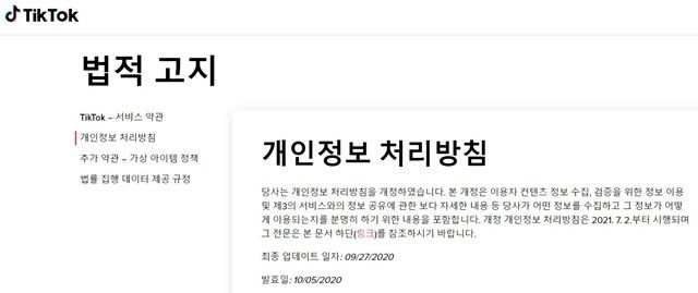 틱톡은 개인정보 처리방침을 개정했다.(자료=틱톡 홈페이지) |