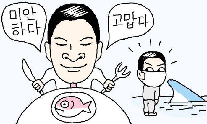 ▶식재료가 된 동물에게 미안하고, 맛있으니 고맙다고 한 게 잘못은 아니다. 그러나 정 부회장은 이 문장이 지닌 사회적 함의를 잘 알고 있을 것이다. 문재인 대통령이 2017년 대선 후보 시절, 팽목항에 마련된 세월호 희생자 분향소에 찾아가 방명록에 이 문장을 썼다. 정 부회장은 한우 사진에는 “너희들이 우리 입맛을 세웠다”고 쓰기도 했다. 박원순 서울시장이 세월호 분향소에서 “너희들이 대한민국을 다시 세웠다”고 쓴 것의 패러디라는 지적이 나온다.