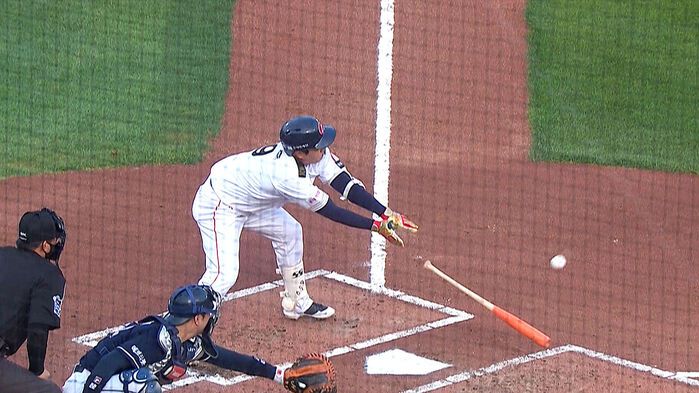 어제(8일) 프로야구 롯데에서는 앞서 소개한 추재현 선수뿐만 아니라 정훈 선수도 만루홈런 포함 4안타를 터뜨렸는데요, 그중에 2개는 내던진 배트에 맞은 공이 안타가 된 진기명기였습니다.