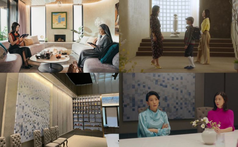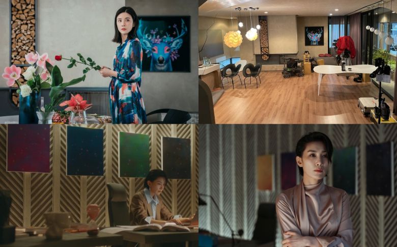 계속해서 "한진호(박혁권)는 철없는 캐릭터에 맞게 아트 토이나 다양한 그림을 즉흥적으로 구매할 것이라 생각했다. 허명욱 작가의 아톰 시리즈가 어울려서 협조를 부탁드렸고, 아톰은 진호가 복권을 긁고 술을 마시는 것을 항상 쳐다보고 있다(웃음). 자신의 옷과 비슷한 번쩍번쩍한 금처럼 보이는 허명욱 작가의 작품은 양순혜(박원숙 분)가 정말 좋아하면서 샀을 것 같았고, 한회장(정동환)의 취향이 돋보이는 고가의 단색화도 많이 배치하고 싶었다. 실제 최고가로 경매에서 많이 팔리는 단색화 작품들을 염두에 두고 '회색의 영역'과 다이닝 홀의 김수영 작가의 작품을 선택했다"고 해 세심함을 엿보이게 했다.