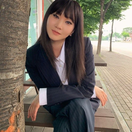 사진 속 장윤주는 스트라이프 셋업을 입고 긴 생머리로 세련된 분위기를 자아낸다. 여기에 세미 스모키 메이크업으로 시크함도 더했다.