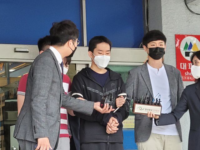 이날 오전 8시께 서울 종로경찰서를 나서면서 언론 포토라인에 선 김영준은 "마스크를 벗을 생각이 있냐"는 취재진의 질문에 마스크를 벗지 않고 "죄송하다"라고만 했다.