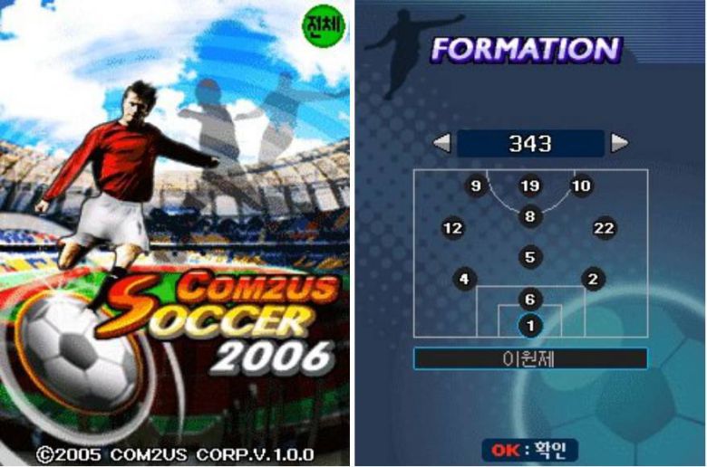 하지만 피처폰의 황혼기인 2005년이나 2006년 들어 드디어 제대로 된 축구 게임이라고 할 수 있는 게임들이 등장했는데요, 그 중 하나가 바로 '컴투스 사커 2006' 입니다.