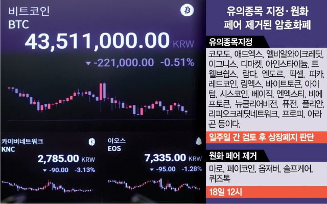 코모도 등 25개, 일주일간 검토 후 상폐 결정