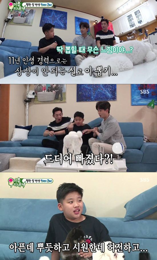 결국 이태성은 아들에게 소원을 들어주고 먹고 싶은 음식을 다 사주겠다며 직접 유치를 뽑아주겠다고 했다. 그리고 실로 이를 묶고 여러 번 시도 끝에 드디어 흔들리던 유치를 뽑아냈다. 겁을 내던 한승이도 이가 뽑혀 나가자 “아픈데 뿌듯하고, 시원한데 허전하다”며 무용담을 털어놓아 웃음을 안겼다.