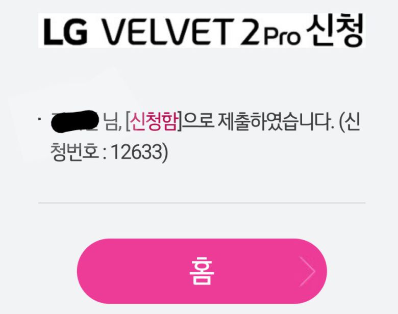 LG 벨벳2 프로 추첨 신청. /엘지모바일사용자카페 캡쳐 |