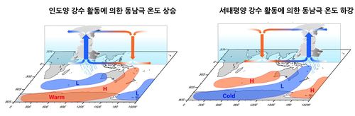 기초과학연구원(IBS) 기후물리연구단 이준이 연구위원(부산대 기후과학연구소 교수)이 이끄는 국제 공동연구팀은 24일 국제학술지 '사이언스 어드밴시스'(Science Advances)에서 열대 서태평양의 강수활동 증가가 동남극 지표 기온 하강의 20~40%를 유발하는 것으로 추정된다고 밝혔다.