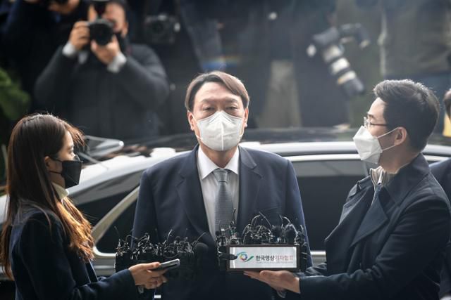 3월 4일 윤석열 검찰총장이 서울 서초구 대검찰청 청사 앞에서 사의를 표명하고 있다. 이한호 기자