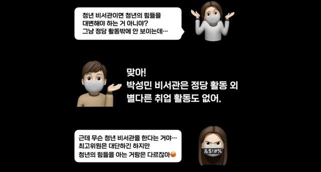 아울러 박 비서관을 보호하려고만 하는 민주당 의원들에게 "청년들은 바보가 아니다. 보호할수록 더 분노를 느낀다"고 분노를 드러냈다.