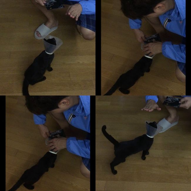 공개된 사진 속에서 박수홍은 반려묘 다홍이를 훈련시키고 있는 모습. 2년 전 모습의 다홍이는 왜소한 모습이지만 현재 박수홍의 손길을 탄 후 부쩍 건강해진 모습이 눈길을 끈다.