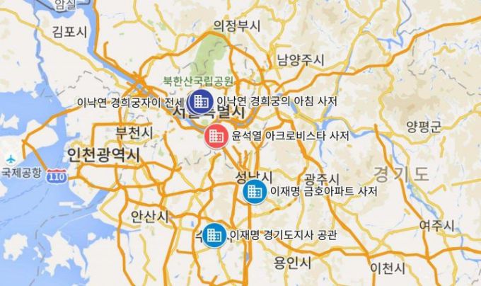 살펴 본 곳은 여론조사 결과 ‘차기 대선주자 지지도’ 상위권을 차지한 윤석열 전 검찰총장, 이재명 경기도지사, 이낙연 전 국무총리 등 3인의 집이다. 이들은 한길리서치, 리얼미터, 코리아정보리서치 등 다수의 여론조사에서 ‘차기 대선주자 지지도’ 1~3위를 차지한 인물들이다.
