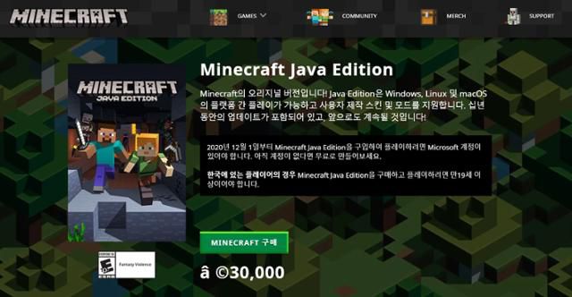 이미 마인크래프트 공식 홈페이지에는 "한국에 있는 플레이어의 경우 마인크래프트 자바 에디션을 구매하려면 만 19세 이상이어야 한다"고 공지하고 있다.