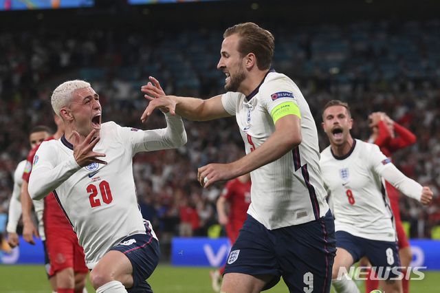 잉글랜드는 8일(한국시간) 영국 런던의 웸블리 스타디움에서 열린 대회 4강전에서 덴마크와 1-1로 비긴 뒤 연장전에서 해리 케인의 페널티킥 결승골로 2-1 승리했다.