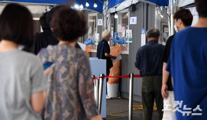 서울역광장에 마련된 선별검사소에서 시민들이 검사를 받고 있다. 황진환 기자
