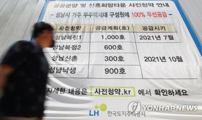 3기 신도시인 인천 계양과 성남 복정1 등 정부가 조성한 수도권 신규택지의 사전청약이 시작된 16일 오전 경기도 성남시 수정구 한 공사 현장에 안내 현수막이 붙어 있다. 연합뉴스