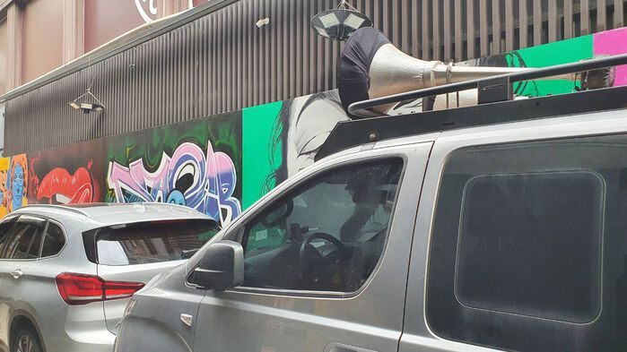 확성기로 방송을 하던 한 남성은 "그림이 보기 싫어 어제부터 차로 막아두고 있다"고 했습니다.