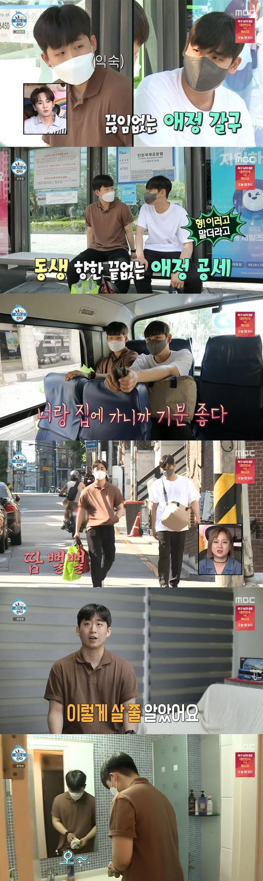 동생은 박재정의 자취방을 보고 "잘 사네"라고 감탄했다. 박재정은 "별 감흥이 없더라"라고 말해 웃음을 자아냈다. 동생은 "나는 형이 이렇게 살 줄 알았다. 형이 좀 깔끔하다. 그대로구나라고 생각했다"라고 말했다.