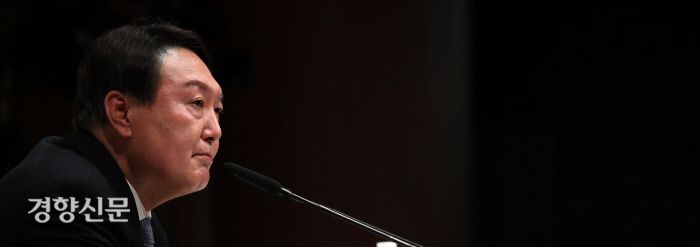 윤석열 전 검찰총장이 6월 29일 서울 서초구 매헌 윤봉길 의사 기념관에서 열린 기자회견에서 취재진의 질문을 듣고 있다. / 국회사진기자단 |